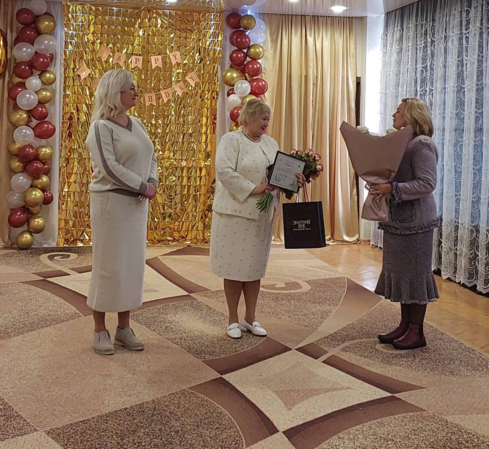 Поздоровити зі святом ювілярку завітали виконуюча обов’язки голови Адміністрації Салтівського району Харківської міської ради Олена Мєзєнцева та начальник Управління освіти Салтівського району Харківської міської ради Оксана Гресь. Гості передали від міського голови Ігоря Терехова побажання Галині Вікторівні невичерпної енергії, нових звершень, підтримки колег і великих успіхів у всіх починаннях.