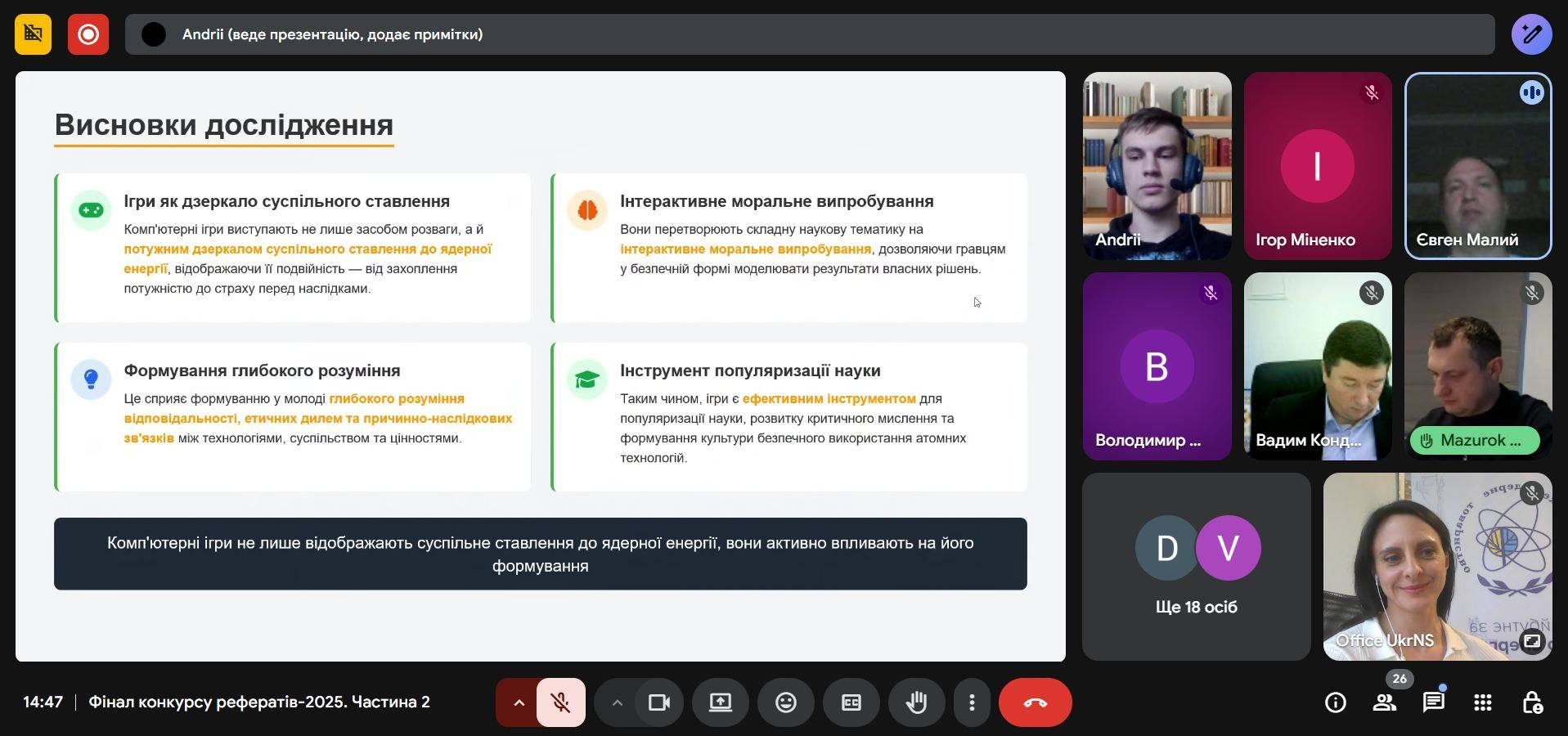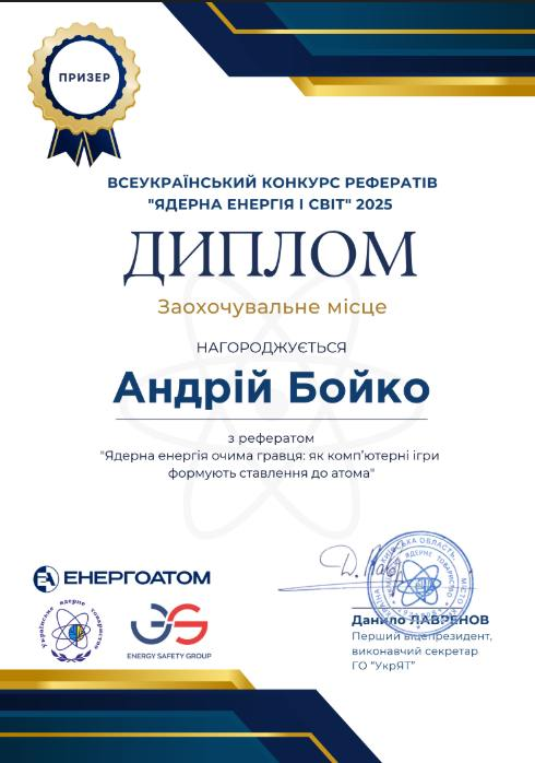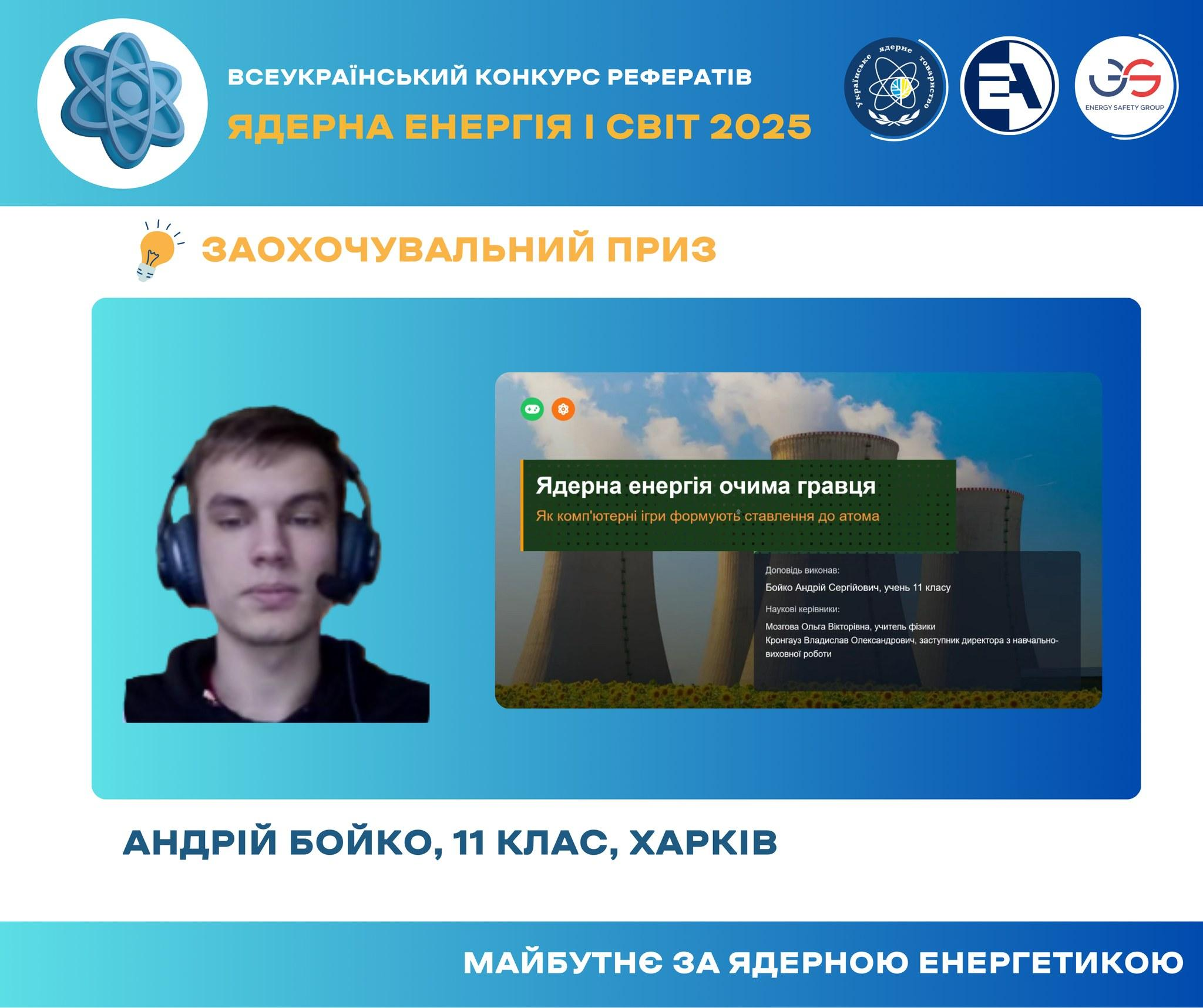 Відбувся фінал Всеукраїнського конкурсу рефератів серед учнівської молоді «Ядерна енергія і світ», який щороку проводиться Українським ядерним товариством разом з АТ «НАЕК «Енергоатом» за підтримки Групи компаній Energy Safety Group та закладів вищої освіти – НТУУ «КПІ ім. Ігоря Сікорського», НУ «Львівська Політехніка, НУ «Одеська Політехніка», Харківського національного університету ім. В.Н. Каразіна.