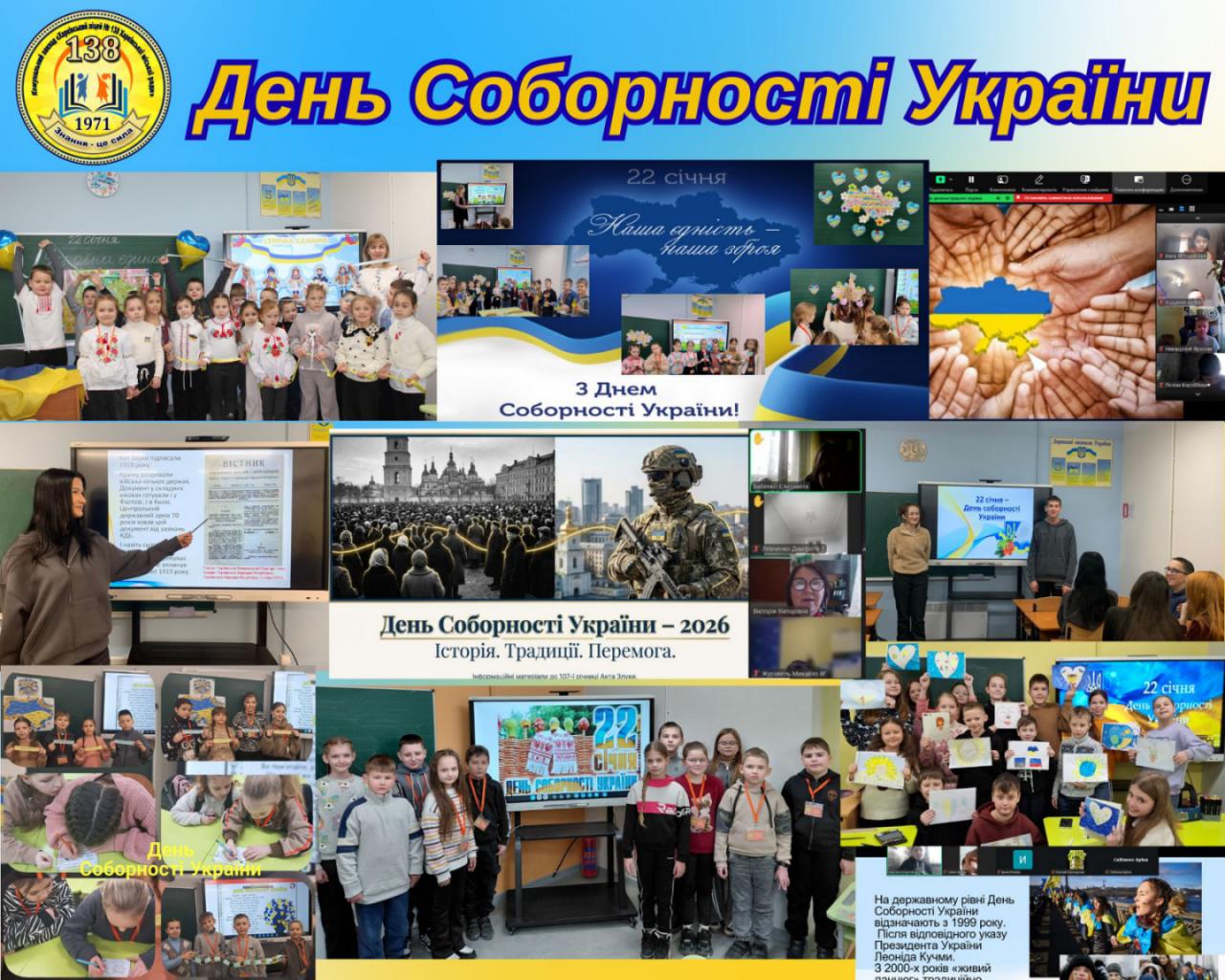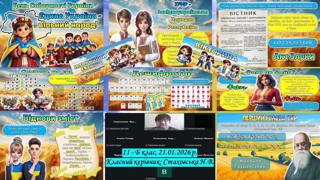 У закладах освіти району відбулися тематичні заходи, присвячені цій знаковій даті: виховні години, інтерактивні заняття, патріотичні флешмоби, творчі виставки, квести та вікторини. Під час них учні поглиблювали знання про історичне значення Акту Злуки 1919 року, осмислювали його роль у становленні української державності та усвідомлювали цінність єдності нашого народу.