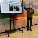 Геннадій Володимирович Репін, учитель предмета «Захист України» ХЛ №139, поділився досвідом під час виступу-презентації «Урок предмета «Захист України» як перша точка дотику громадянина з необхідністю захисту своєї держави».