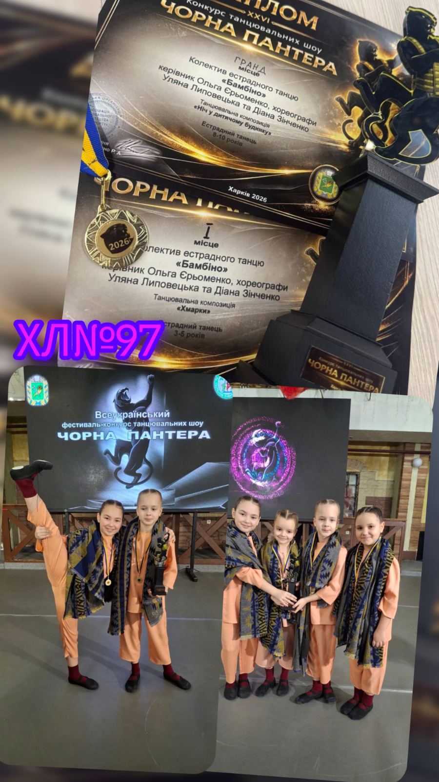 Учениці 2-А класу ХЛ №97 — Овчаренко Марія, Кравченко Кіра та Озоліна Єлизавета — здобули Гран-прі на Всеукраїнському фестивалі-конкурсі танцювальних шоу «Чорна Пантера».