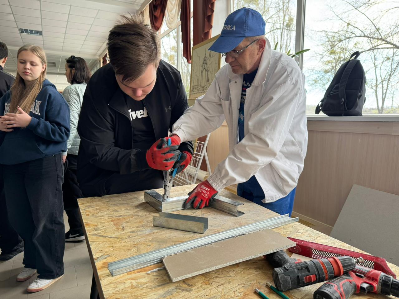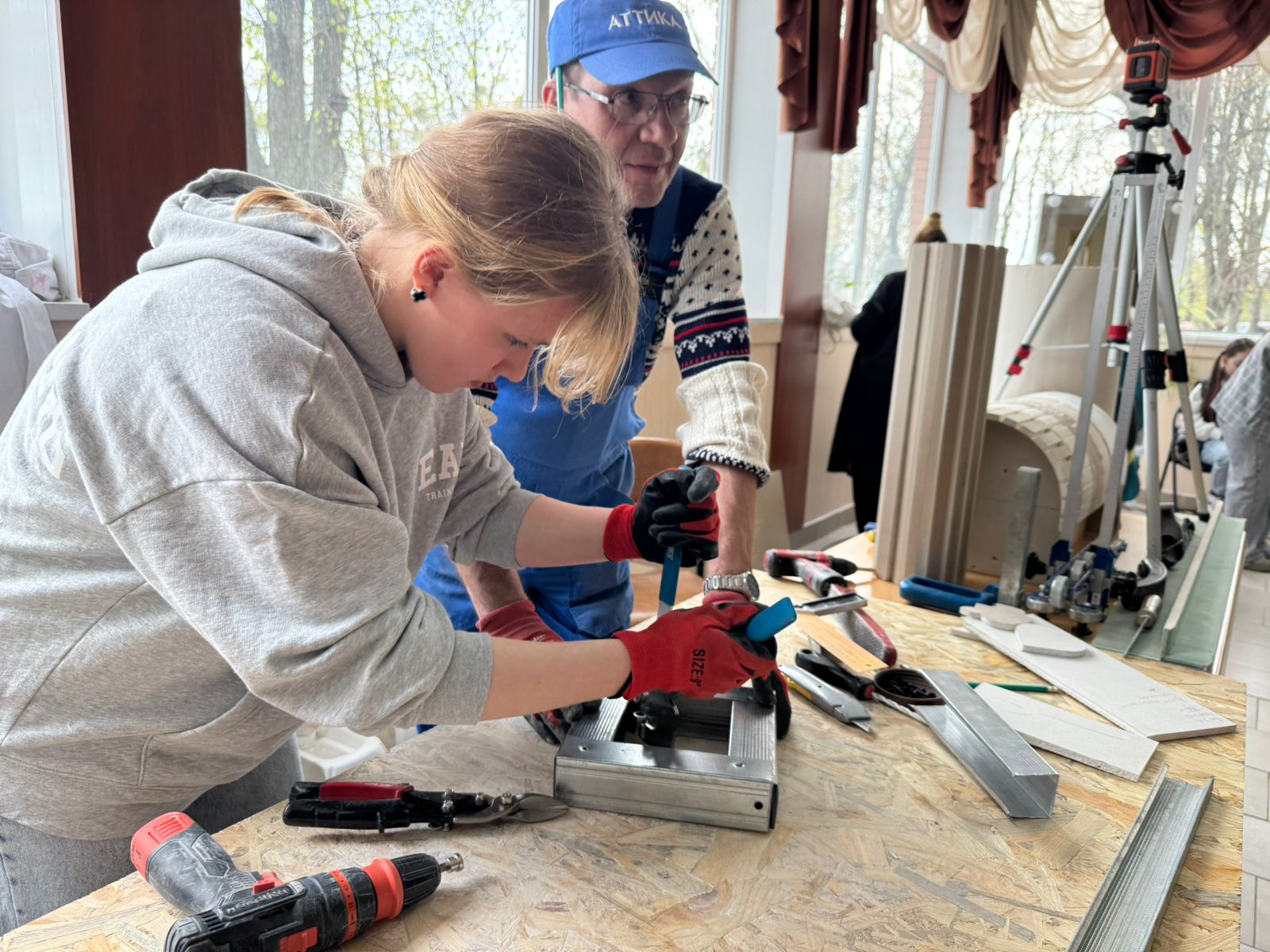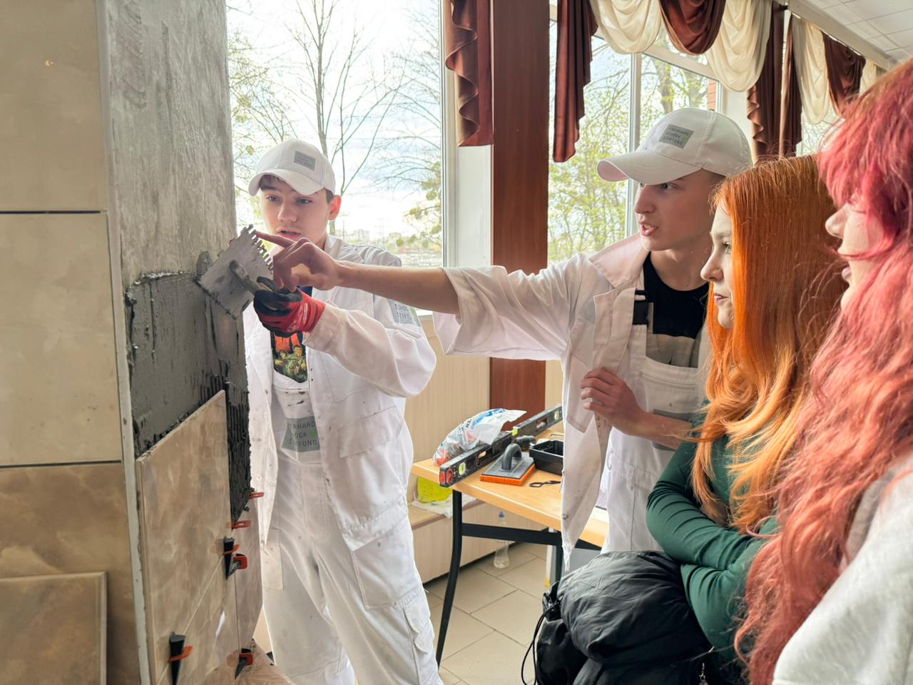 На будівельному майданчику майбутнього учні тестували сучасні інструменти, працювали з лазерними нівелірами, знайомилися з новими матеріалами та пробували себе в оздобленні стін.