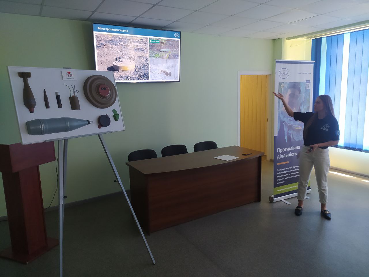 17.07.2023 року, представниками міжнародної гуманітарної організації ХАЛО Траст в Україні за допомогою презентації та наочності продемонстрували ризики пов’язані із вибухонебезпечними предметами, розповіли про більш небезпечні місця і ділянки, та яким чином діяти у разі виявлення невідомих предметів.