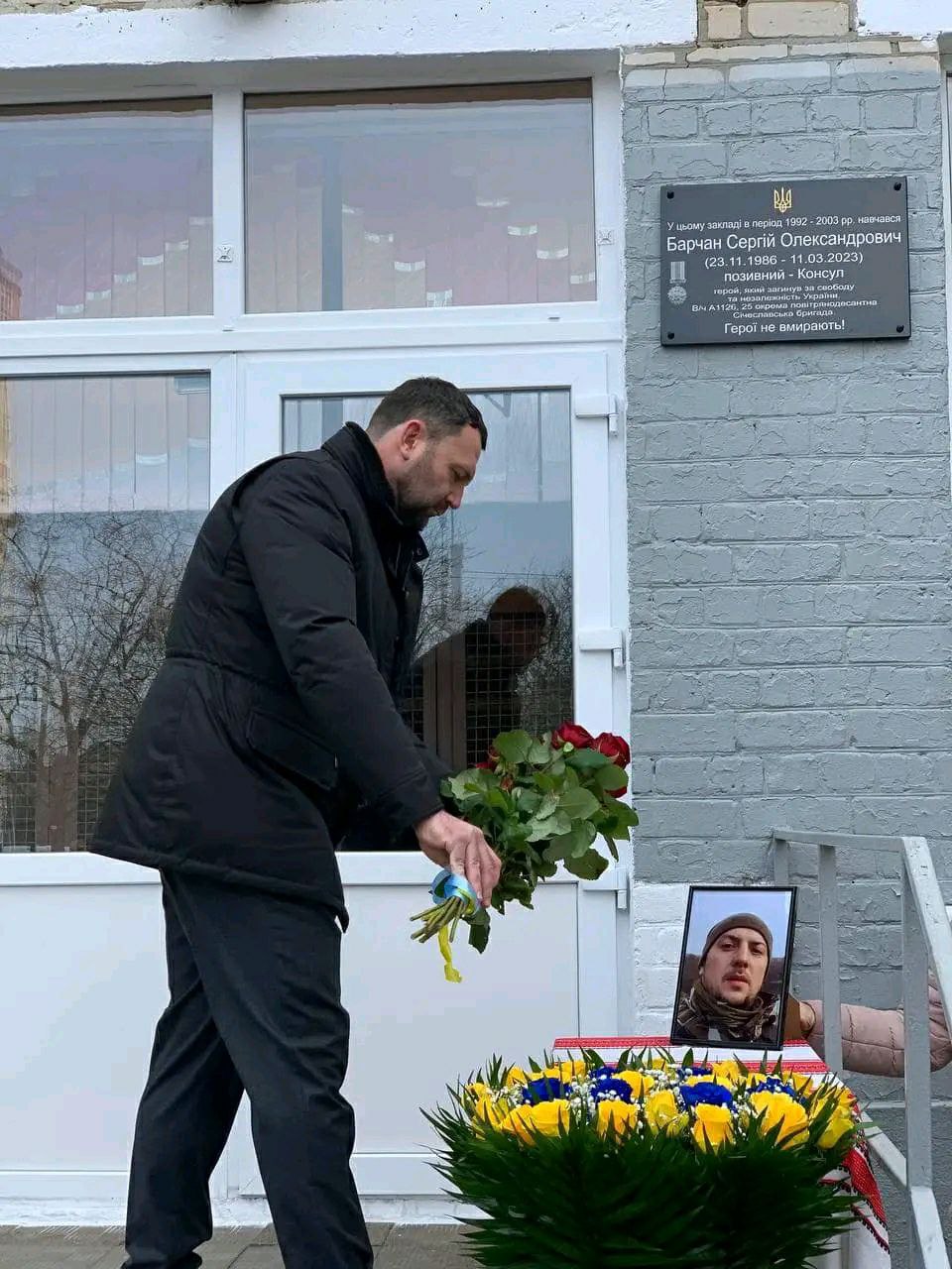 11 лютого 2024 року у Салтівському районі відбулася важлива для людських сердець подія – відкриття на будівлі Харківського ліцею № 128 меморіальної дошки в пам’ять про колишнього випускника, загиблого воїна Сергія Барчана.