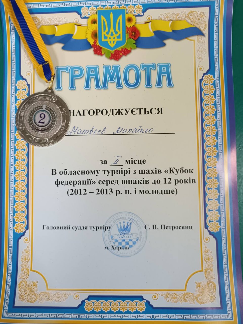 Протягом тижня, з 7 по 14 квітня 2024 року, вихованці КЗ “КДЮСШ №4” змагались за перемогу в обласному турнірі з шахів “Кубок Федерації” серед юнаків та дівчат 2012 – 2013 р.н.. В результаті змагань Романько Родіон та Ляховецька Кіра вибороли золоті нагороди, а Матвєєв Михайло – срібну. Вітаємо юних шахістів та їх тренерів Кубату В.В. та Саханович Л.Г. з вдалим виступом і бажаємо нових перемог.