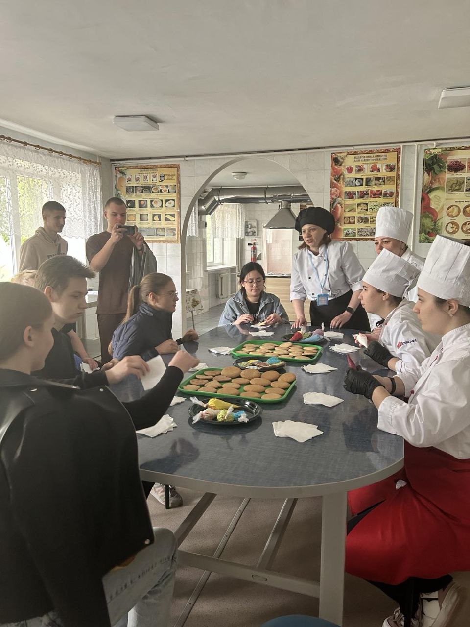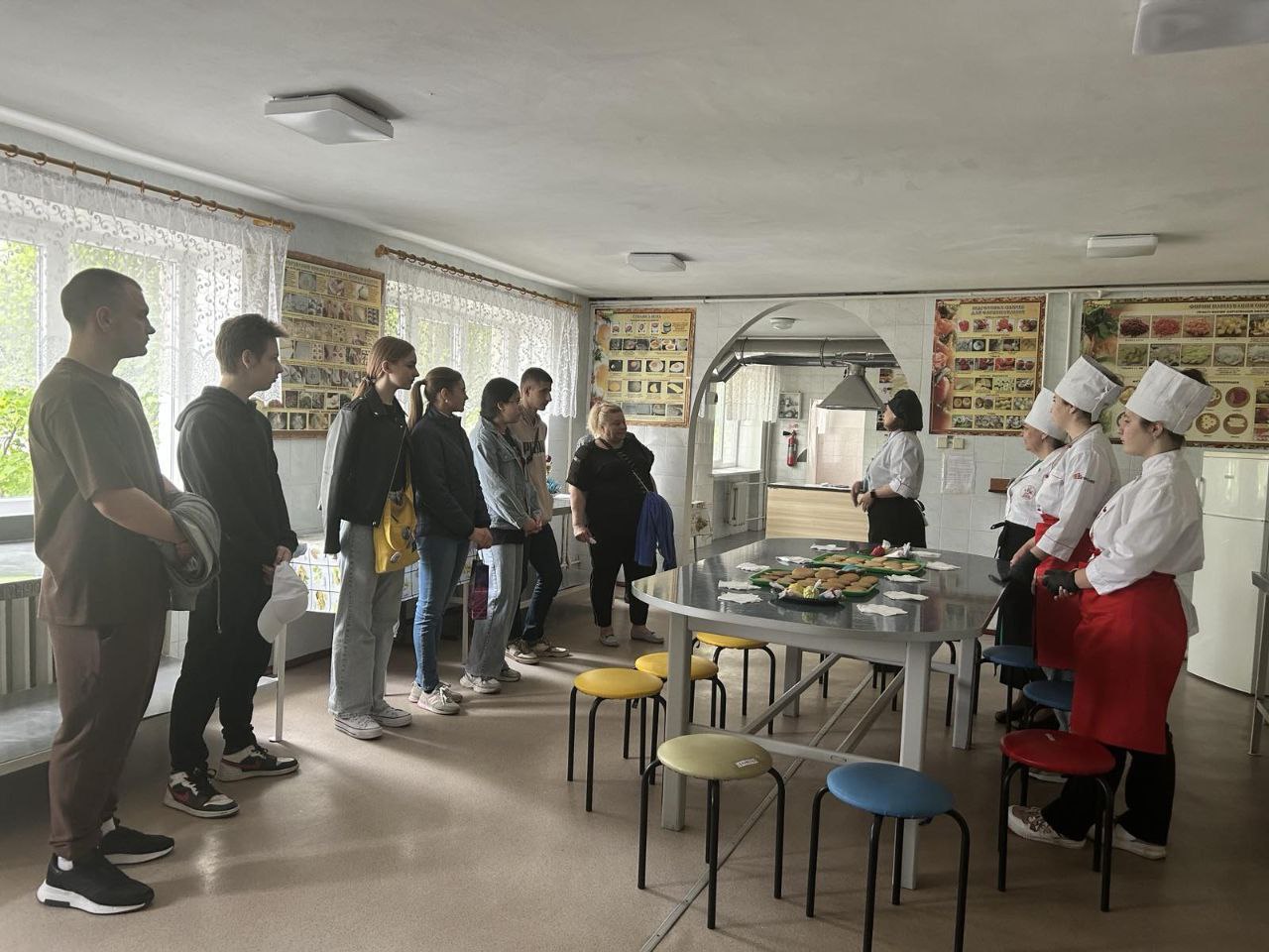 До профтеху завітали учні 28 закладів загальної середньої освіти Салтівського району. Вони ознайомилися з матеріально-технічною базою училища: побачили кабінети теоретичного навчання, будівельні майстерні (мулярів, штукатурів, лицювальників-плиточників, малярів, монтажників систем утеплення будівель), лабораторії кухарів та кондитерів. Майбутні абітурієнти мали змогу власноруч виконати деякі технологічні операції з фарбування та лицювання поверхні гіпсовою плиткою. В лабораторії кухарів кожний охочий зміг розписати для себе пряник. Гості отримали у подарунок невеличкий смаколик.